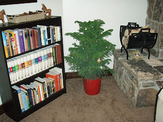 Home Depot was giving away pine branches they had trimmed from trees. That's what we made the mantle piece garland from. Our tree for this year is this little Norfolk Island Pine with two ornaments on it (it came with one). I guess we need some more ornaments :)